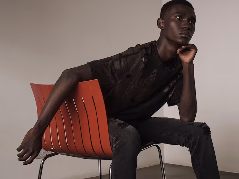 Slashed denim, utility details and heavy metal references lend an urban edge to Balmain’s Fall/Winter 2017 menswear collection. The T-shirt prints were translated via bead, stone, and pin into the most outrageously ornate oversize tees perhaps ever seen on this planet.